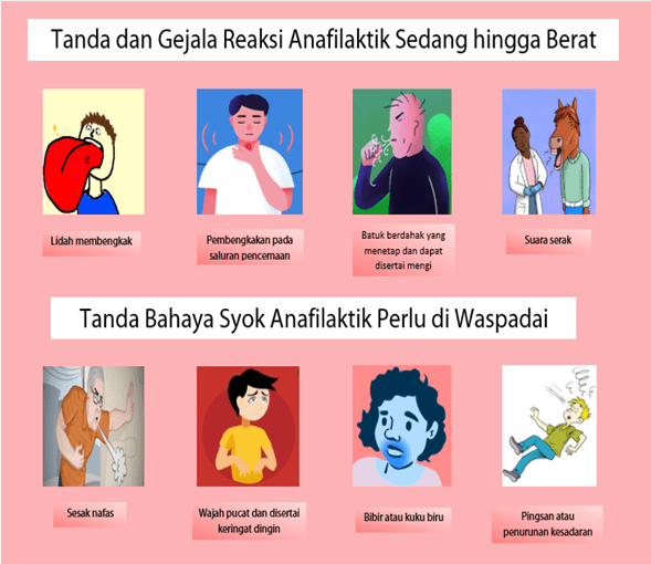 - Segera hubungi ambulan atau bawa pasien ke unit gawat darurat terdekat karena reaksi anafilaksis dapat mengancam nyawa