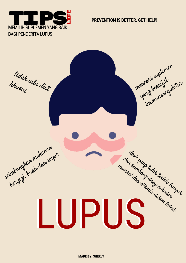 Systemic Lupus Erythematosus (SLE) adalah salah satu kondisi autoimun yang paling dikenali. Lupus adalah suatu kondisi dimana sistem kekebalan tubuh secara keliru menyerang organ dan jaringan yang sehat. Tidak ada diet khusus untuk lupus, meskipun banyak klaim di Internet, dan di berbagai buku maupun publikasi lainnya. Secara umum, Anda harus mencoba makan makanan bergizi, seimbang, dan bervariasi yang mengandung banyak buah dan sayuran segar, biji-bijian, dan daging, unggas, dan ikan dalam jumlah sedang. Pembatasan senyawa-senyawa inflamatorik, seperti gluten, gula-gulaan, lemak jenuh, daging merah dan makanan proses pada umumnya juga mempunyai manfaat dalam pengendalian lupus. 1,3