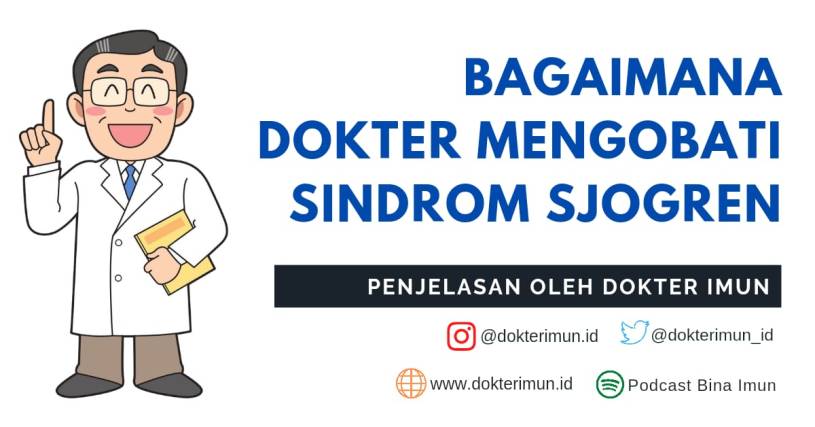 Pengobatan penderita Sjogren difokuskan pada meringankan gejala, sehingga dokter akan menyarankan obat berdasarkan gejala yang dialami oleh penderita. Obat yang dapat diserepkan oleh dokter untuk mengurangi gejala mata kering dan peradangan berupa obat tetes mata buatan dan selain itu dapat juga diberikan obat minum untuk mengurangi gejala mulut kering dengan cara meningkatkan produksi air liur dan air mata.3,4 Bagi individu yang merasakan rasa terbakar atau gatal akibat sensitif terhadap pengawet dalam air mata buatan, segera konsultasikan ke dokter untuk mendapatkan tetes mata alternatif yaitu tetes mata yang bebas pengawet.5 Pengobatan untuk penderita Sjogren sekunder adalah untuk menangani penyakit yang mendasarinya terlebih dahulu. Apabila penderita tersebut juga memiliki gejala berupa demam, lemas, kelelahan, ruam, nyeri otot, nyeri sendi atau infeksi jamur, maka dokter akan meresepkan obat minum OAINS (Obat Anti-Inflamasi Non-Steroid) atau DMARD (Disease Modifying Anti-Rheumatic Drugs) atau obat anti-jamur untuk meringankan gejala tersebut, sesuai dengan organ yang terlibat pada pasien dengan sindrom Sjogren.4,6