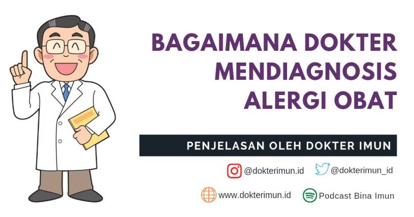 Diagnosis alergi obat bisa dilakukan dengan menanyakan kepada pasien mengenai riwayat penyakit, riwayat konsumsi obat, kesulitan atau gejala yang dicurigai timbul sebagai bentuk alergi obat. Diagnosis alergi obat akan lebih sulit dilakukan jika pasien mengkonsumsi lebih dari satu obat. Terdapat beberapa hal penting yang harus ditanyakan ketika melakukan wawancara pada pasien alergi obat yaitu menanyakan dan mencatat semua obat yang digunakan, riwayat pemakaian obat lama dan reaksi obat, durasi yang dibutuhkan untuk menimbulkan manifestasi alergi setelah menggunakan obat, frekuensi, dosis lama penggunan obat dan cara pemberian obat.1,3