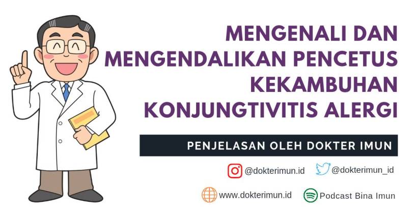 Alergen yang dapat menyebabkan Konjungtivitis Alergi dapat berasal dari berbagai macam sumber. Debu kotoran, lumut, serbuk sari dari tumbuhan, rumput dapat menyebabkan Konjungtivitis Alergi. Alergen-alergen tertentu juga dapat ditemukan di dalam lingkungan rumah seperti tungau debu, kotoran dari kecoa, debu dan asap rokok, hingga bulu binatang peliharaan. 3 Tujuan dari pengobatan Konjungtivitis Alergi adalah meningkatkan kenyamanan dan kualitas hidup dari pasien dengan meminimalisir inflamasi yang disebabkan oleh respon alergi dan juga menghindari komplikasi yang dapat terjadi pada inflamasi yang berkepanjangan.