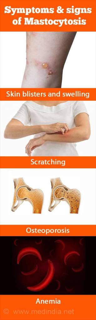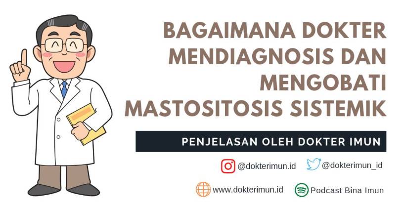Mastositosis adalah suatu kondisi di mana tubuh memproduksi sel mast secara berlebihan. Sel mast merupakan bagian dari sistem kekebalan tubuh yang bertanggung jawab untuk proses inflamasi. 1 Tugas sel mast adalah mendeteksi serangan kuman penyebab infeksi dan kemudian memicu respons inflamasi dengan melepaskan sebuah senyawa yaitu histamin sebagai bentuk perlindungan. Namun, produksi sel mast yang berlebihan dapat memicu respons peradangan yang berlebihan (seperti reaksi alergi), termasuk gatal, bersin, hidung tersumbat, nyeri perut, radang, dan masalah pencernaan. Ada dua jenis mastositosis, yakni mastositosis kulit bila penumpukan sel mast hanya terjadi di kulit, yang biasanya terjadi pada anak-anak, sedangkan mastositosis sistemik terjadi penumpukan sel mast pada lebih dari satu bagian tubuh seperti tulang, kulit, dan organ dalam lainnya. 2 Mastositosis sistemik umumnya terjadi pada orang dewasa. Gejala klinis mastositosis pada penderita berbeda-beda tergantung lokasi atau jenis penumpukannya. Pada mastositosis kulit, gejala yang ditunjukkan adalah merah, ruam atau bercak kemerahan yang gatal, benjolan di kulit, jika tergores, ruam menjadi kemerahan dan bengkak. Sedangkan, gejala mastositosis sistemik meliputi hidung tersumbat, kelelahan, sakit kepala, diare, sakit perut, mual, atau muntah. Sensasi seperti pingsan atau kehilangan kesadaran tekanan darah rendah, palpitasi, anemia dan kelainan darah lainnya. Pembesaran hati, limpa dan kelenjar getah bening, osteoporosis, gangguan mental seperti depresi dan gangguan kecemasan. 3