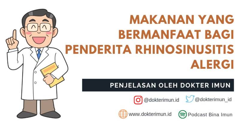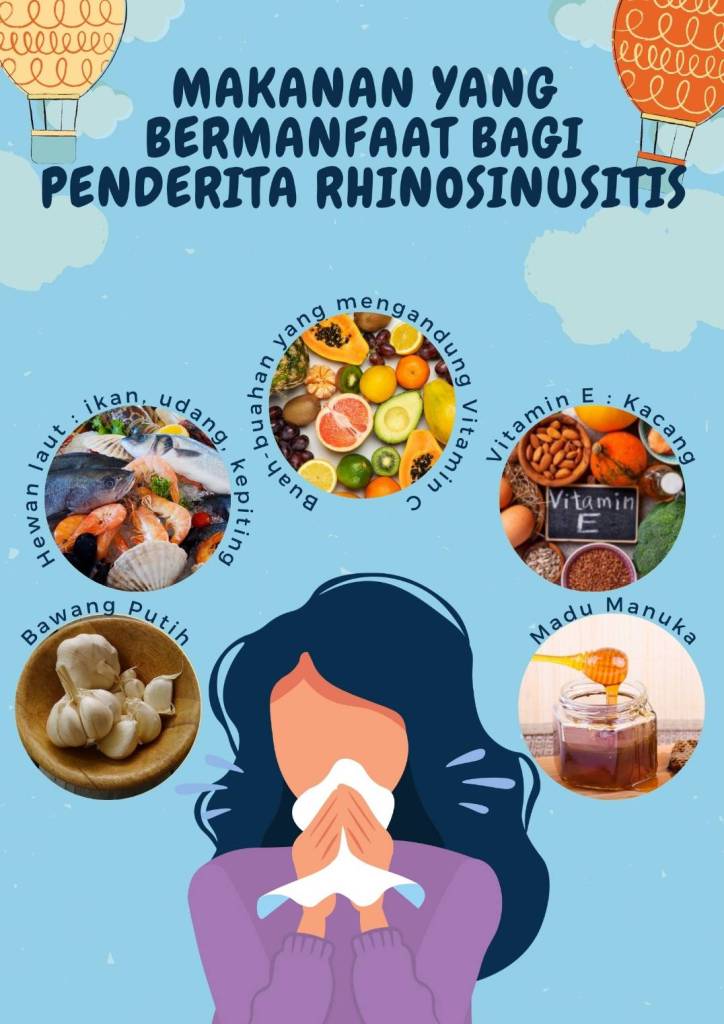 Tatalaksana rhinosinusitis itu sendiri bisa dengan obat-obatan dan cuci hidung. Namun, selain dengan obat-obatan, ternyata makanan juga berpengaruh penting pada pasien dengan rhinosinusitis. Salah satu contoh makanan yang bermanfaat bagi penderita rhinosinusitis adalah makanan laut. Makanan laut mengandung protein yang tinggi, khususnya ikan. Ikan mengandung asam lemak omega-3, yang dapat membantu dalam memicu sistem imun tubuh dan mengurangi inflamasi. Penelitian juga menunjukkan bahwa makanan yang mengandung omega-3 dapat membantu mencegah infeksi, dan menurunkan risiko terkena penyakit jantung.2