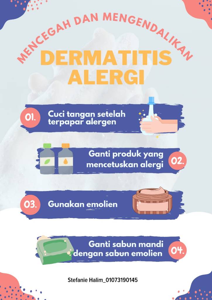 Dermatitis kontak alergi akan menjadi penyakit yang menetap pada penderitanya seumur hidup. Maka dari itu, penghindaran agen pencetus harus menjadi strategi yang perlu diingat dan dilakukan. Manajemen dari respon inflamasi adalah tujuan penting dalam pengobatan.1